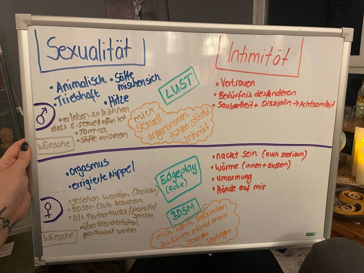 Keines dieses Tools ersetzt eine Beratung / Therapie. Es kann zu Anwendungsfehlern kommen, wenn die Übungen ohne professionelle Anleitung durchgeführt werden. https://sexualtherapie-beziehungstherapie.de/uebungen/ BodyScan / Orgastische Welle / Orgasmic Yoga https://www.sexmedpedia.com/sensate-focus-uebungen/ https://www.beziehungsdynamik.de/uebungen/sensate-focus/ Sensate Fokus Übung https://happylibido.org/sexualtherapie-uebungen/ Sexuelle Erregungskurve, Erregungsreise / Öffnung Der Ursprung der Welt von Liv Strömquist https://www.avant-verlag.de/comics/der-ursprung-der-welt/ Come as you are https://www.thalia.de/shop/home/artikeldetails/A1058704673 Liebe deine Vulva https://www.thalia.de/shop/home/artikeldetails/A1053040431 Vulvina Malbuch https://www.amazon.de/Vulvina-Coloring-Book-Natacha-Colin/dp/3910590004 The Vulva Gallery https://www.thevulvagallery.com/webshop/vulvacat-variety Penis Malbuch https://www.thalia.de/shop/home/artikeldetails/A1046486034 Slut-Shaming, Whorephobia, and the Unfinished Sexual Revolution https://www.thalia.de/shop/home/artikeldetails/A1059557085 How To Be A Confident Hoe... Because slut shaming Is Over https://www.thalia.de/shop/home/artikeldetails/A1047465118 Sakral Chakra Meditation zur Unterstützung im Auflösen von Blockaden https://femininevibe.podigee.io/b31-geleitete-meditation-sexuelle-blockaden-aufloesen Yoni und Lingam Massage (die Massage der Genitalien) z.B. in Form von "Handarbeitsabenden" die regelmäßig angeboten werden Check-In mit deinem Genital https://spuervertrauen.de/check-in-genital/ Übungen zur bewussten Körperwahrnehmung und zum In-Kontakt-Kommen mit deinem Genital https://spuervertrauen.de/gratis-uebung-meditation-sexualitaet/ Vaginismus https://de.wikipedia.org/wiki/Vaginismus Ganz viele tolle kurze Veröffentlichungen jenseits des binären Geschlechtersystems: https://www.transfabel.de/index.php?main_page=index&cPath=61_28